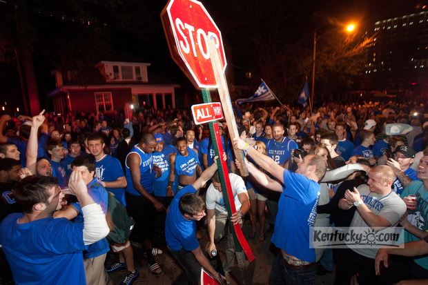 The University of Kentucky fans "celebrate" the Wildcats' Final Four win over Louisville to gain a spot in the National Title game.